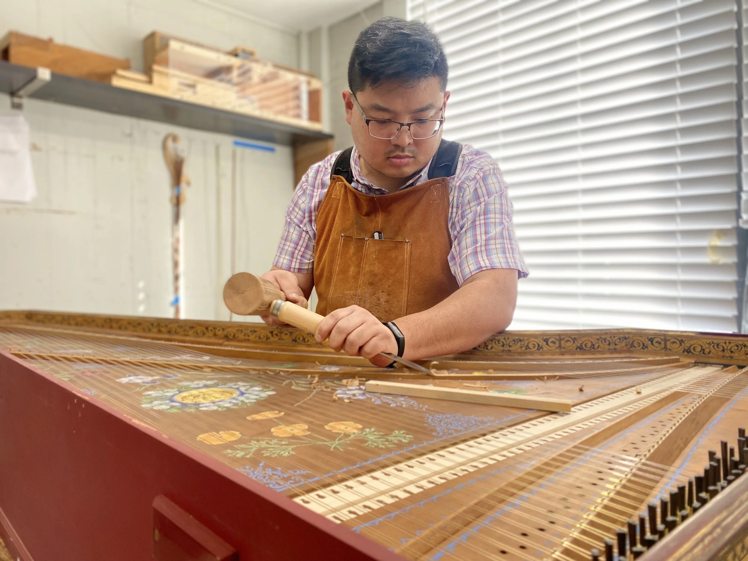 Zhengyi Hou is a harpsichordist, pianist, educator, musicologist, and early keyboard instrument builder from Shanghai, China. He earned his B.A. in music education and musicology from Shanghai Normal University, where he first developed an interest in early keyboard instruments. In 2017, he moved to the United States to further his studies. Originally trained as a pianist, Mr. Hou studied with Edward Auer (2015–2018) and Roberto Plano (2018–2021). He pursued harpsichord studies with Elisabeth Wright (2018–2021) and is currently completing a Doctorate in Harpsichord Performance at Stony Brook University under Arthur Haas. He also holds a Master of Music in Piano Performance and a Performer Diploma in Harpsichord Performance from Indiana University’s Jacobs School of Music. As an instrument builder, Mr. Hou trained with renowned maker Richard Auber at Zuckermann Harpsichords International, where he is now resident harpsichordist, head of the action department, and builder at the Stonington Workshop. He previously served as early keyboard curator at the Jacobs School of Music (2019–2021). His maintenance clients include Carnegie Hall, the Flint Collection, Amherst Early Music Festival, Virginia Baroque Academy, and leading universities. Mr. Hou teaches at the Amherst Early Music Festival and Virginia Baroque Academy, offering harpsichord instruction and chamber ensemble coaching. His teaching experience also includes piano, choir, and ensemble direction, with a focus on nurturing advanced students’ expressive development and musical identity. His musicological work explores early European keyboard instruments in East Asia (15th–19th centuries).